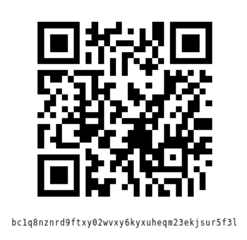 bitcoin: bc1q8nznrd9ftxy02wvxy6kyxuheqm23ekjsur5f3l